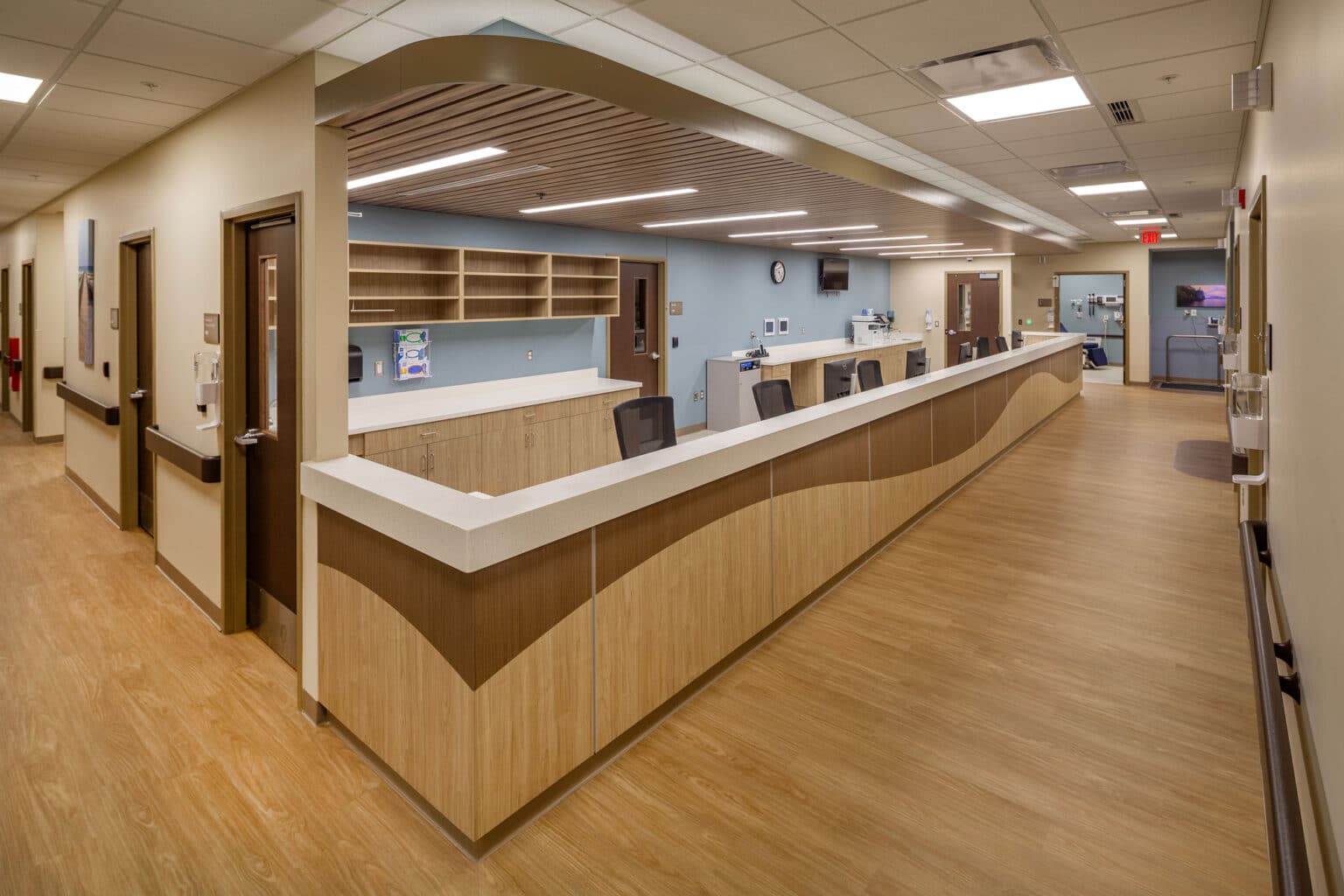 HSR provided architectural and engineering design services for the renovation of the former big box retail building into the Gateway Center for Mile Bluff Medical Center. The 26,000 SF facility was repurposed to house urgent care, pharmacy, and dialysis services, bringing expanded healthcare access to the Mauston community. The project was designed to enhance the patient experience, support current demand, and align with Mile Bluff’s brand. Exterior improvements were made to increase visibility and reflect the identity of the healthcare system.