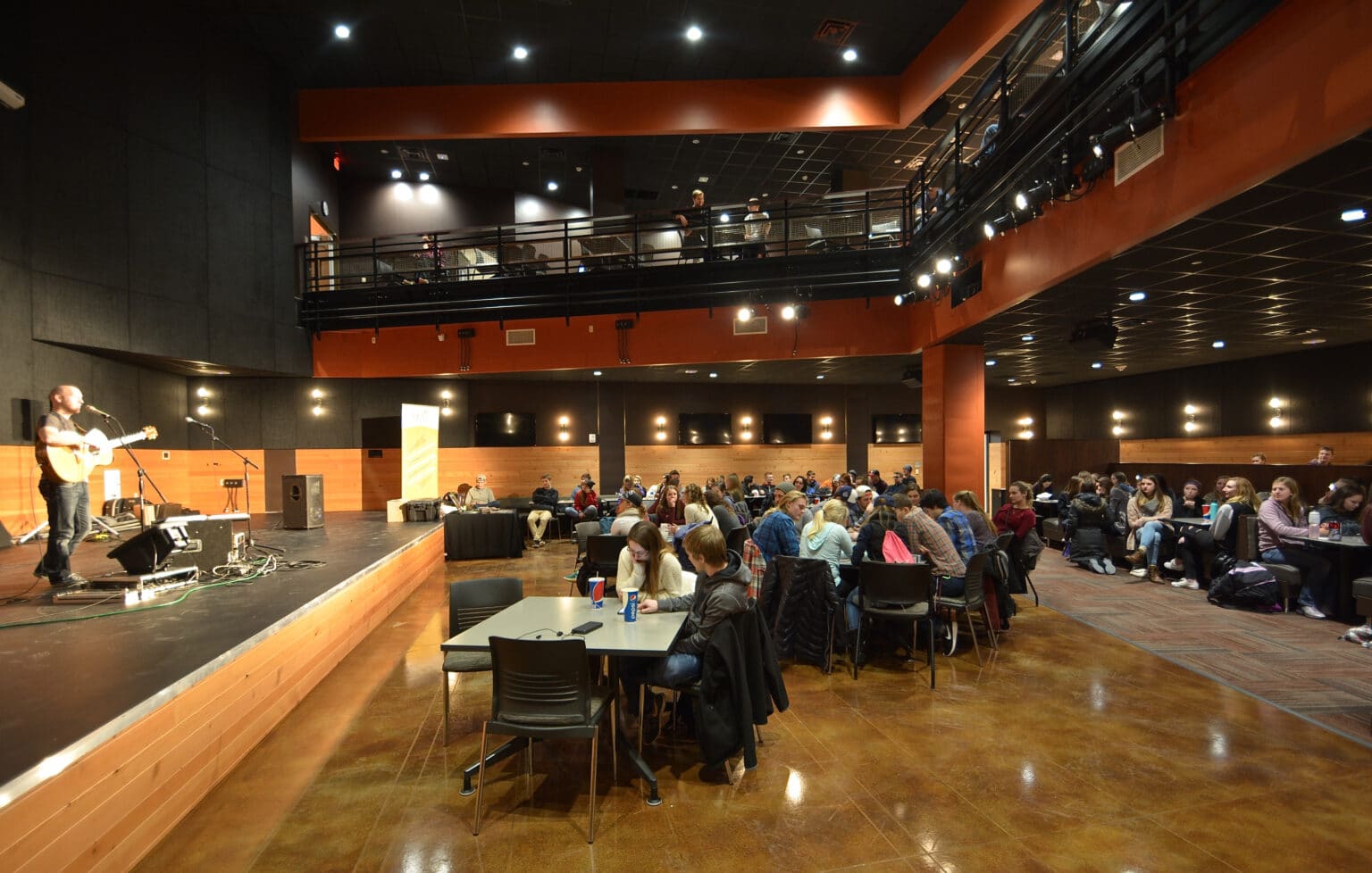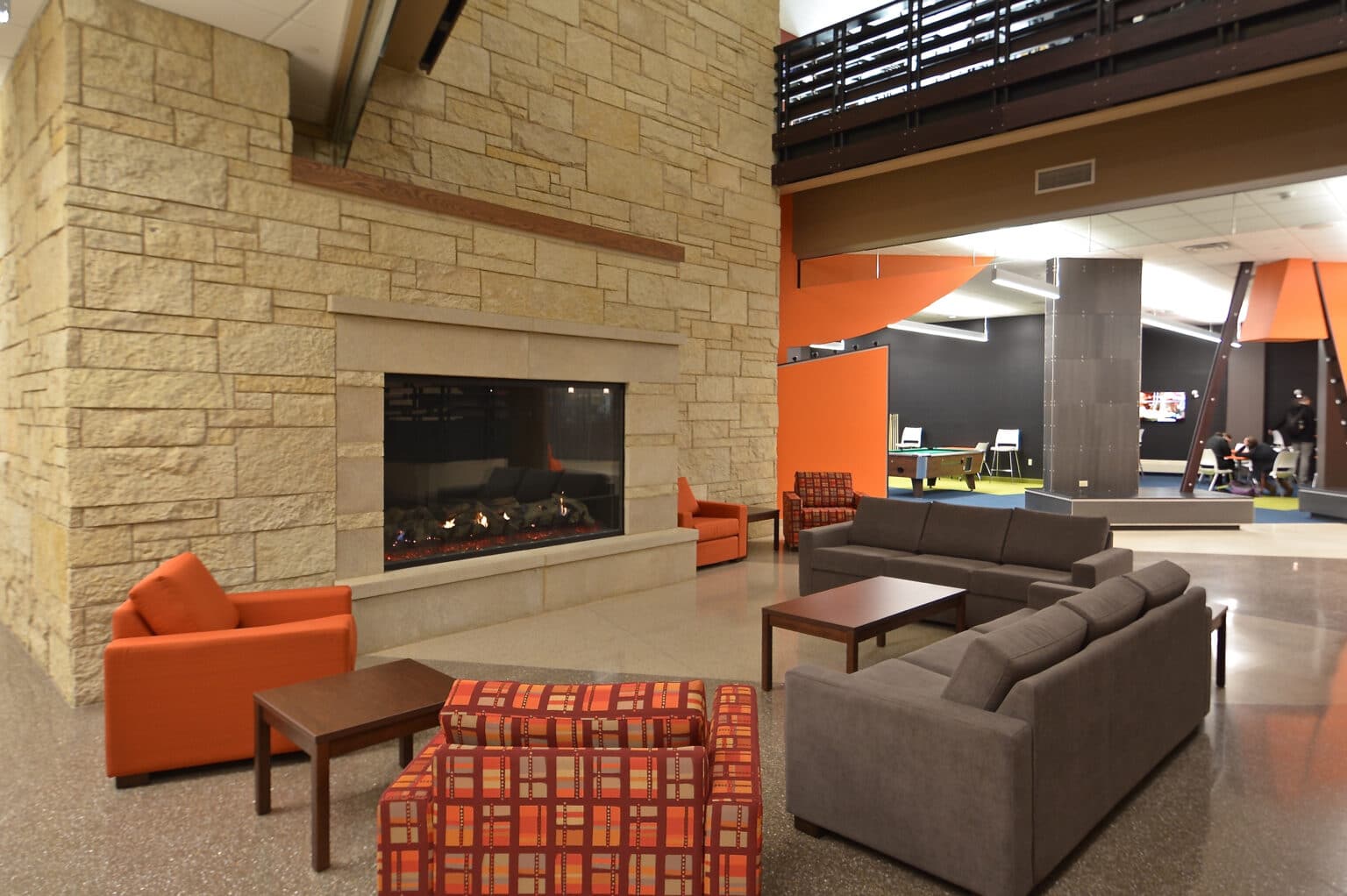 HSR and Kindness Architecture provided the design services for this project. The Student Union at UWL was constructed to support student life and engagement across campus. The 204,787 square-foot facility includes gathering and social spaces, study areas, offices for student organizations and Student Centers Administration, general meeting rooms, performance venues, large event spaces, and a textbook rental area. Food service kitchens, dining areas, and various retail spaces were also included. The building is LEED Gold Certified, and the architecture incorporates natural features found in the La Crosse area that reflect a commitment to sustainability.