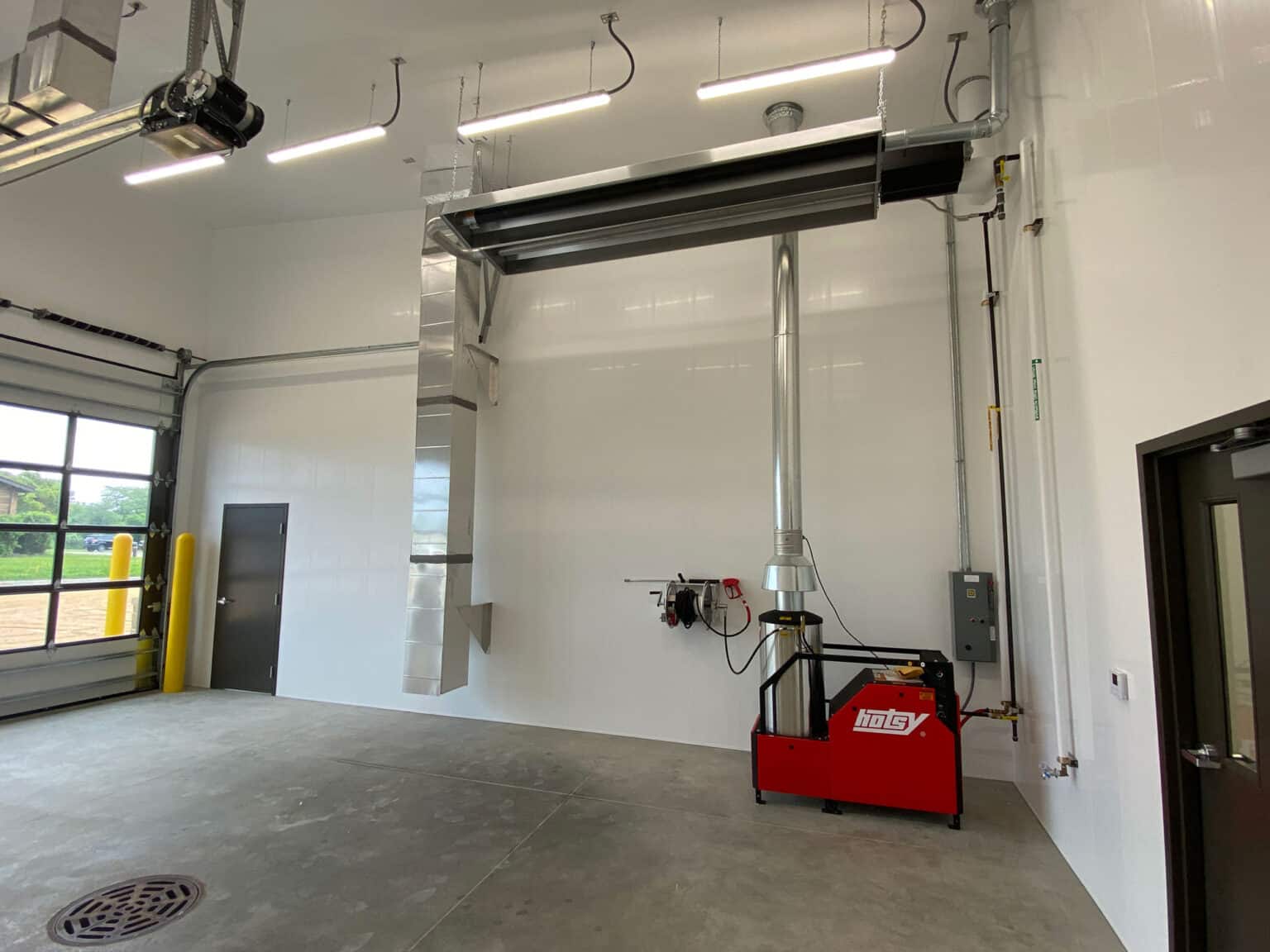 2. A heated shared equipment readiness and repair area with a heated shop space and wash bay area with integrated steam cleaner for cleaning of boats, kayaks, sleds; area for trailer maintenance, fishing net repair, common small maintenance and vehicle storage.